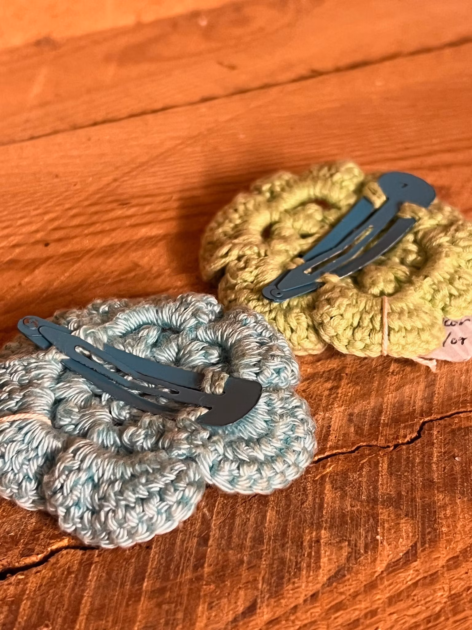 Söta hårspännen med virkad blommaBredd 6 cmPris per styck